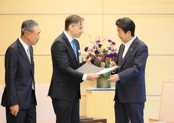 Tokyo - The BRT's 2019 Recommendations were formally submitted to PM Shinzo Abe by BRT co-Chairman Masaki Sakuyama and by Michael Mroczek (Member of the EU-side of the BRT).